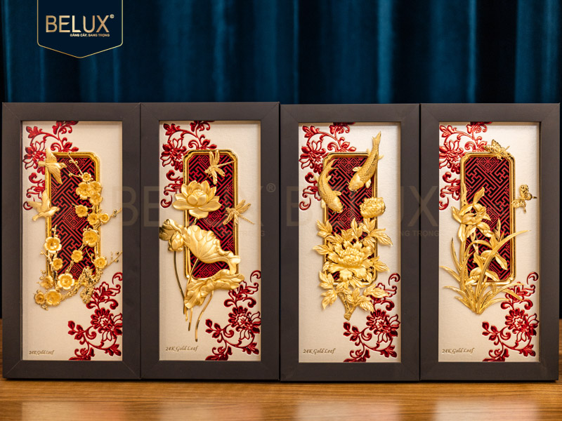 - Đến với Belux, quý khách hàng sẽ tìm được bộ tranh tứ quý dát vàng 24K như ý cũng như các sản phẩm tranh vàng khác.