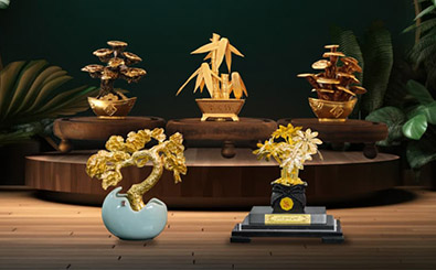 Giá phụ thuộc vào hàm lượng vàng thật, độ tinh xảo và quy mô chậu cây. Sản phẩm Belux có kèm theo chứng nhận vàng 24K , hộp quà sang trọng và bảo hành sản phẩm.