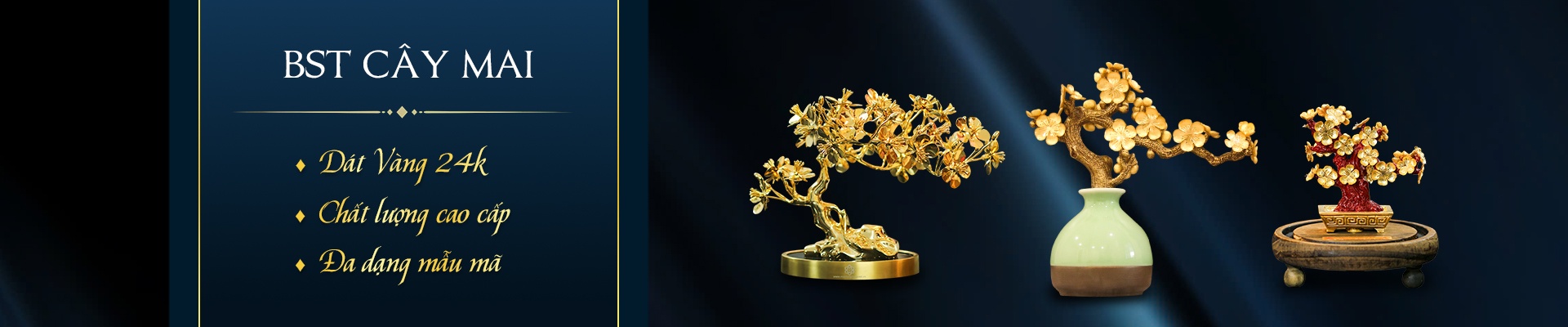 Loại sản phẩm Kích thước Giá tham khảo (VNĐ) Cây mai mini 15–20cm 1.200.000 – 2.500.000 Cây mai trung 25–30cm 3.000.000 – 4.800.000 Cây mai pha lê dát vàng 25–28cm 5.000.000 – 7.000.000 Phiên bản khắc logo / thiết kế riêng Theo yêu cầu Liên hệ Belux Giá có thể thay đổi tùy theo loại vàng (24K hoặc công nghiệp), độ tinh xảo và số lượng đặt hàng.