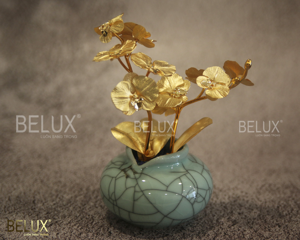 - Tên sản phẩm: Chậu lan hồ điệp 3 cành dát vàng 24K