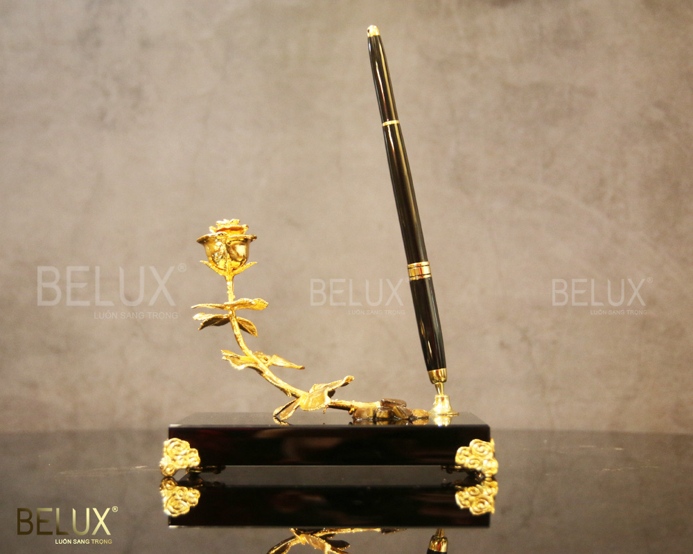 Đế bút hoa hồng mạ vàng đẹp, sang trọng, đẳng cấp sẽ là món quà tặng độc đáo, ý nghĩa, thể hiện tấm chân tình của người tặng quà.