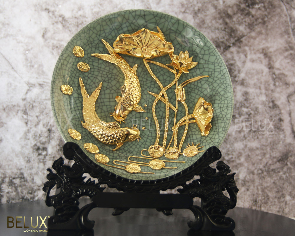 Đĩa cá chép hoa sen dát vàng 24k xanh ngọc là món quà tặng cao cấp mà BELUX muốn gửi đến quý khách hàng. Sản phẩm không chỉ đẹp, tinh xảo, sang trọng mà còn ẩn chứa nhiều ý nghĩa tốt lành. Vậy trưng bày đĩa cá chép hoa sen này đem lại ý nghĩa gì cho gia chủ? câu trả lời sẽ được bật mí ngay sau đây.