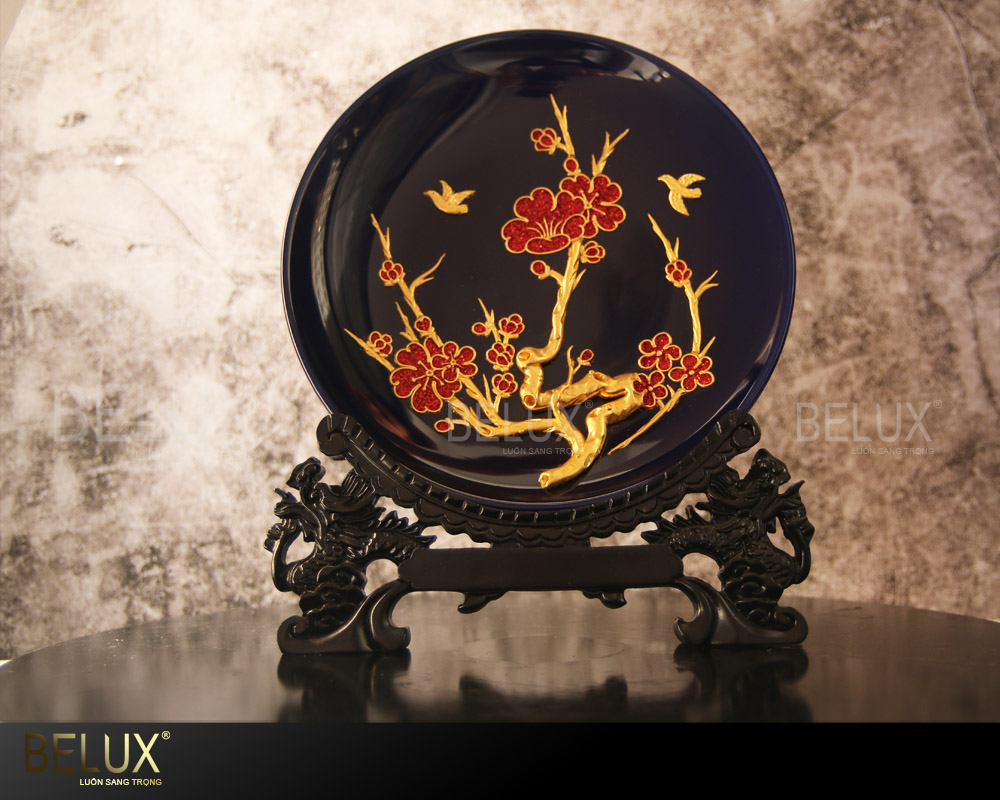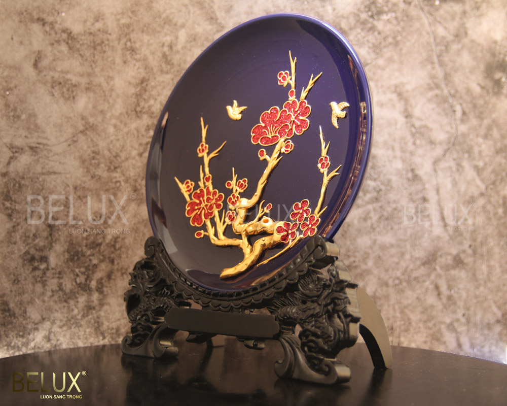 Đĩa chim én của BELUX được chế tác bởi những người nghệ nhân tài hoa. Từng đường nét, hình ảnh trên mặt đĩa được tái hiện một cách rõ ràng, sống động, chân thật. Sự kết hợp màu sắc một cách khéo léo giữa màu vàng của chim én và cành mai, màu đỏ của hoa mai nổi bật trên màu tím than của mặt đĩa. Sự kết hợp này giúp tạo hiệu ứng tương phản, làm nổi bật vẻ đẹp của cây mai, tạo ấn tượng mạnh, thu hút ánh nhìn. Sản phẩm mang vẻ đẹp tinh tế, tạo không gian sang trọng, cuốn hút. Chắc chắn đây sẽ là vật trang trí hoặc món quà tuyệt vời trong ngày tết hoặc những dịp đặc biệt như mừng thọ, tân gia.