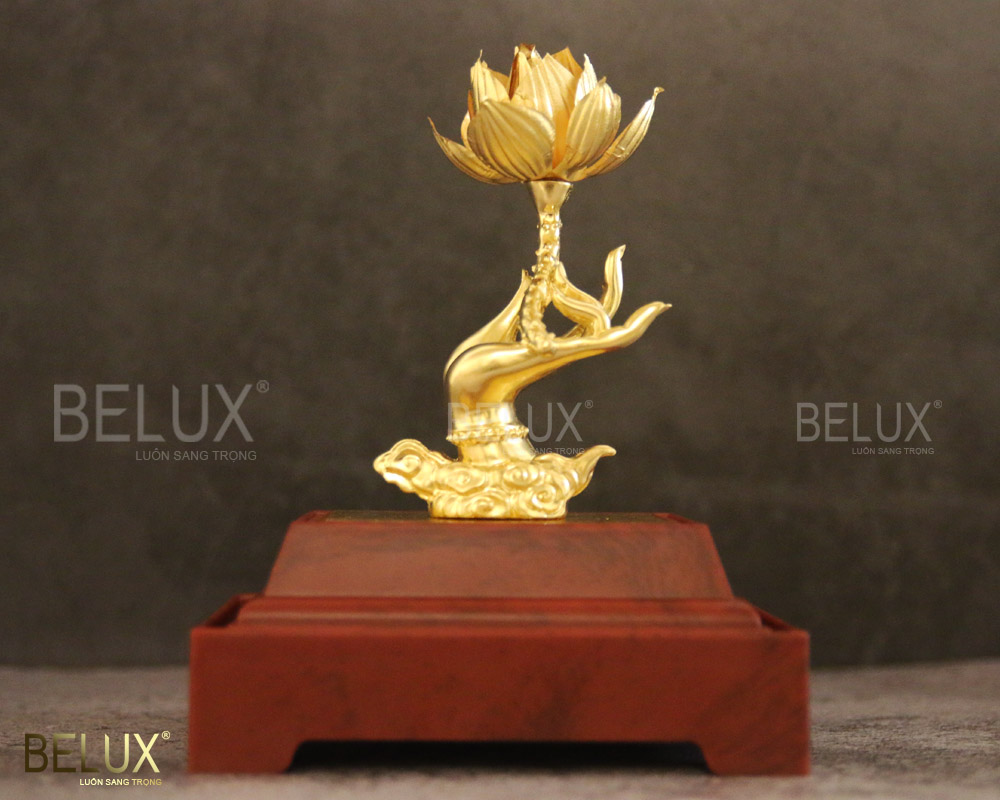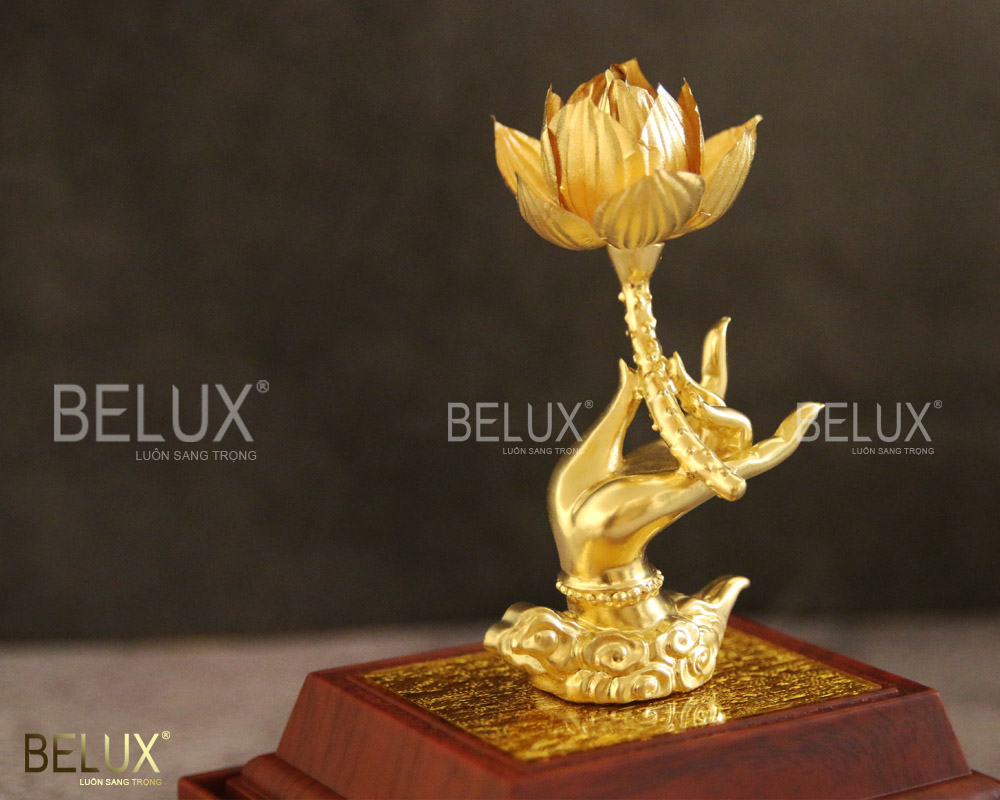Sản phẩm không chỉ là món đồ trang trí phong thủy cao cấp, mà còn mang ý nghĩa cầu bình an, may mắn và viên mãn cho gia chủ. Phật Thủ Liên Hoa dát vàng 24k thường được trưng bày tại phòng khách, phòng làm việc hoặc bàn thờ, đồng thời là món quà tặng sang trọng dành cho người thân, lãnh đạo hay đối tác trong những dịp trọng đại như lễ Tết, tân gia, hoặc khai trương.