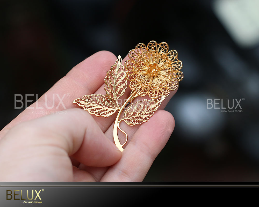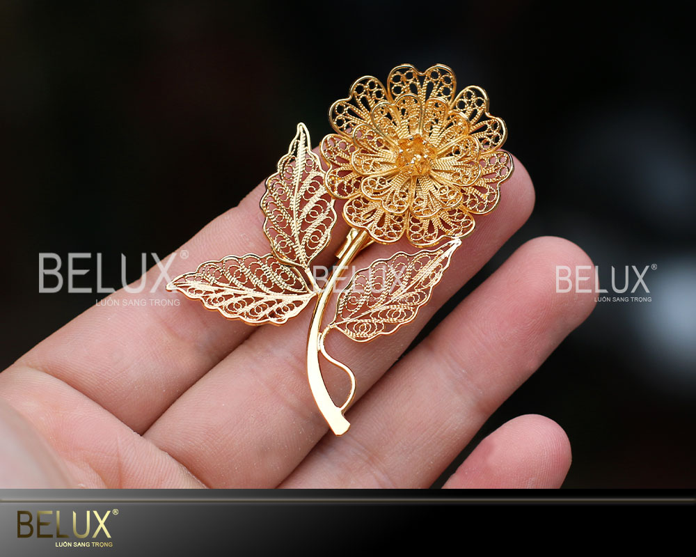 Mẫu sản phẩm Hoa cài áo là dòng sản phẩm thủ công được các nghệ nhân kim hoàn của Belux chết tác trên chất liệu bạc nguyên chất. Trải qua quá trình chế tác công phu bông hoa cài áo mang vẻ đẹp tinh tế với màu bạc nguyên chất. Sản phẩm có thể được mạ vàng theo yêu cầu của quý khách.