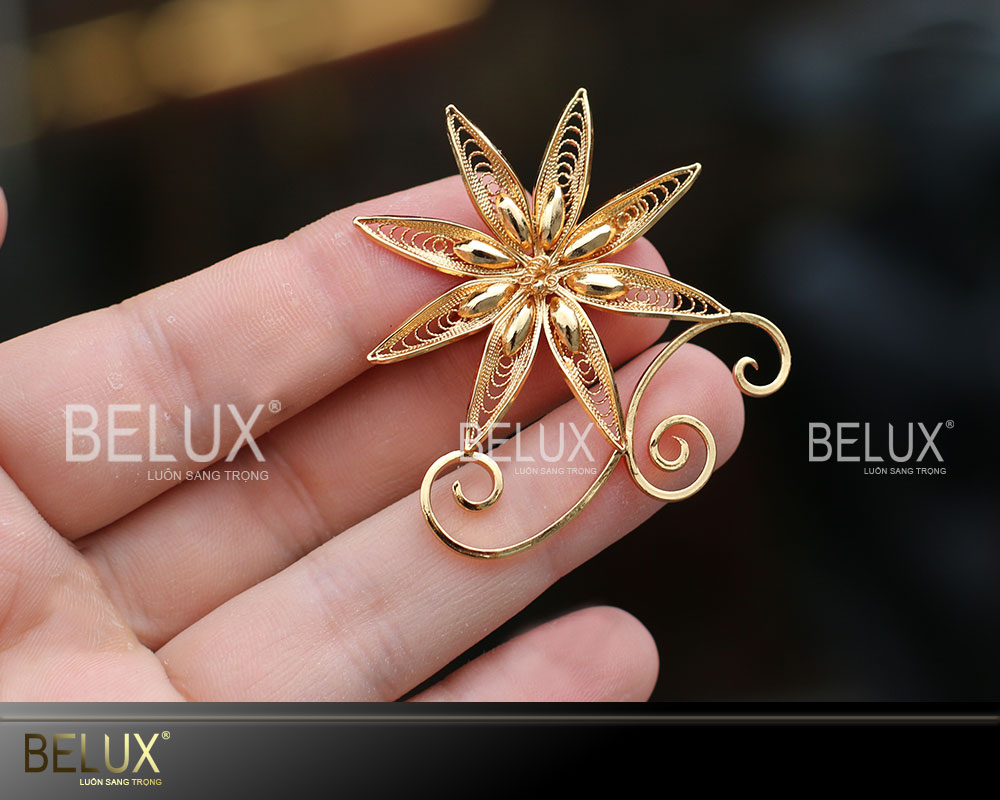 Mẫu sản phẩm Hoa cài áo là dòng sản phẩm thủ công được các nghệ nhân kim hoàn của Belux chết tác trên chất liệu bạc nguyên chất. Trải qua quá trình chế tác công phu bông hoa cài áo mang vẻ đẹp tinh tế với màu bạc nguyên chất. Sản phẩm có thể được mạ vàng theo yêu cầu của quý khách.