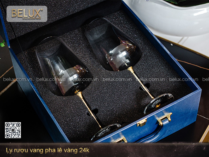 Ly rượu vang pha lê vàng 24k được làm bằng pha lê cao cấp, thân ly có chứa vàng lá 24K. Bộ sản phẩm sang trọng, đẳng cấp lại có giá trị và tính nghệ thuật cao. Bộ ly rất thích hợp làm món quà trong các sự kiện đặc biệt như cho dịp kỷ niệm thành lập, lễ, tết, tân gia,…