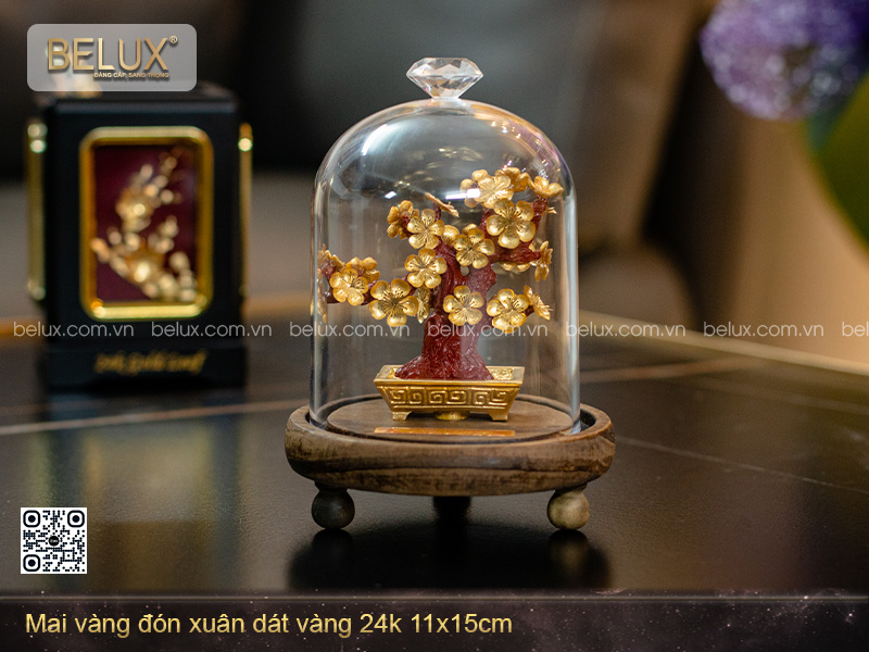 Chậu mai vàng đón xuân mạ vàng 24k thể hiện hy vọng về tương lai tươi sáng với mong muốn có được may mắn, tiền tài, danh vọng dồi dào trong năm mới. Chậu mai tất cả tâm huyết của những người nghệ nhân tại BELUX với từng chi tiết khéo léo được khắc họa trên cây mai. Mỗi cánh hoa đều được chăm chút tỉ mỉ, được mạ vàng lá 24K thanh khiết. Tất cả tạo nên một sản phẩm hoàn hảo nhất về cả ý nghĩa tinh thần lẫn giá trị nghệ thuật. Khi dùng làm quà tặng, Chậu hoa mai dát vàng 24K sẽ thay bạn gửi đi lời chúc hạnh phúc, suôn sẻ và thành công đến với người nhận. Chậu hoa mai dát vàng phù hợp để làm quà tặng sếp, quà tết tặng khách hàng, tặng người thân dịp tết…Quý khách có thể trưng bày tại nhiều không gian khác nhau trong nhà như phòng khách, phòng làm việc, văn phòng,….