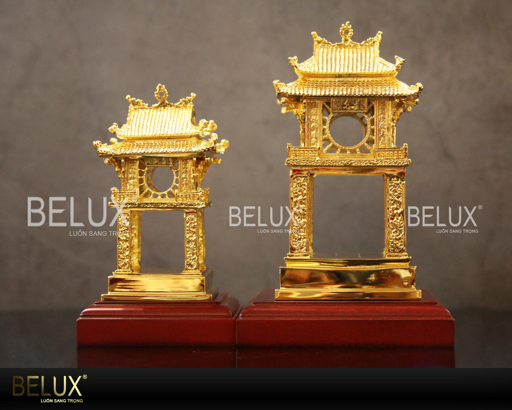 | 3. Mô Hình Khuê Văn Các bằng đồng Nếu tranh mang tính trang trí thì mô hình Khuê Văn Các lại tái hiện lại biểu tượng một cách chân thực và sống động nhất. Mẫu mô hình này tại Belux được đúc từ đồng vàng, tái hiện lại kiến trúc mái cong, ô cửa sổ hình mặt trời một cách chi tiết, sắc nét
