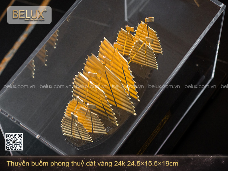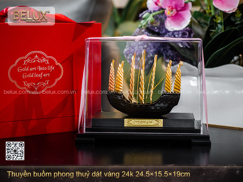 Khi được dát vàng 24K, giá trị của mô hình thuyền không chỉ dừng lại ở mặt hình ảnh mà còn được nâng tầm về mặt phong thủy và thẩm mỹ. Vàng là biểu tượng của sự giàu có, thịnh vượng và bền vững – khi kết hợp với hình ảnh thuyền buồm, bức thông điệp trở nên mạnh mẽ hơn: cầu chúc tài lộc, vận may và thành công đến với chủ nhân.