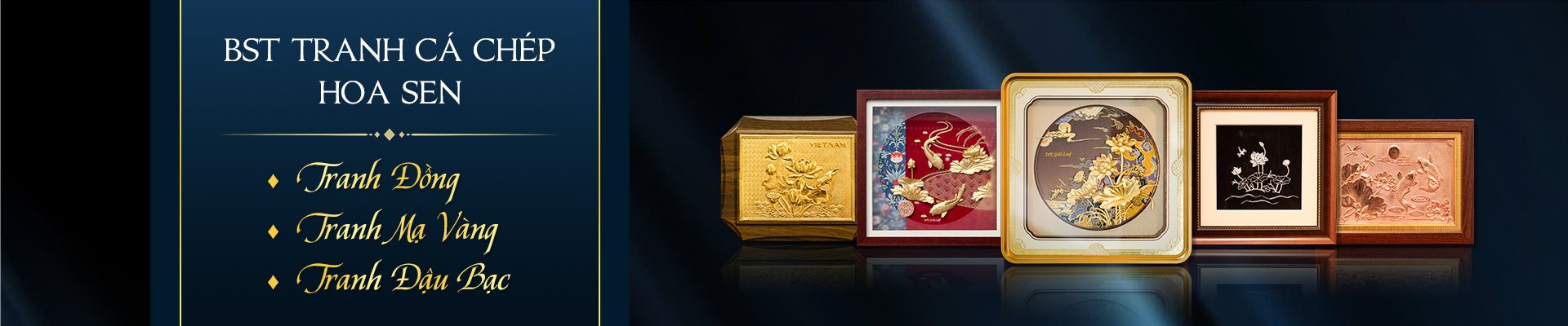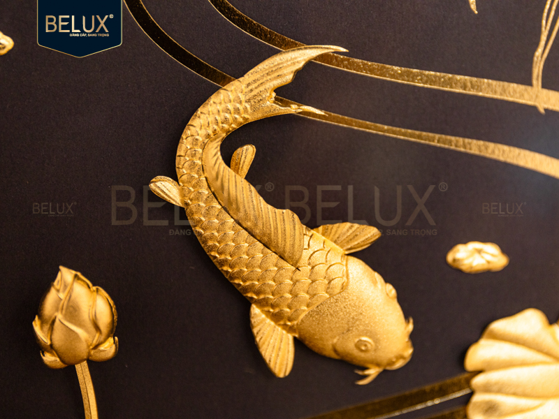 | Tranh cá chép hoa sen mạ vàng 24K:Chất liệu mạ vàng 24K đem lại vẻ đẹp sang trọng, lung linh, phù hợp để trang trí trong các không gian đòi hỏi tính cao cấp, trang nhã. Tranh mạ vàng không chỉ giữ gìn vẻ đẹp bền lâu mà còn tượng trưng cho sự quý giá, quyền uy và thịnh vượng.Loại tranh này thường được đặt trong phòng khách, phòng làm việc hoặc các không gian trang trọng như phòng tiếp khách của doanh nhân, lãnh đạo. Chất liệu vàng cao cấp còn mang ý nghĩa đem lại tài lộc dồi dào, giúp chủ nhân gặp nhiều may mắn trong cuộc sống và công việc. | ![]() |