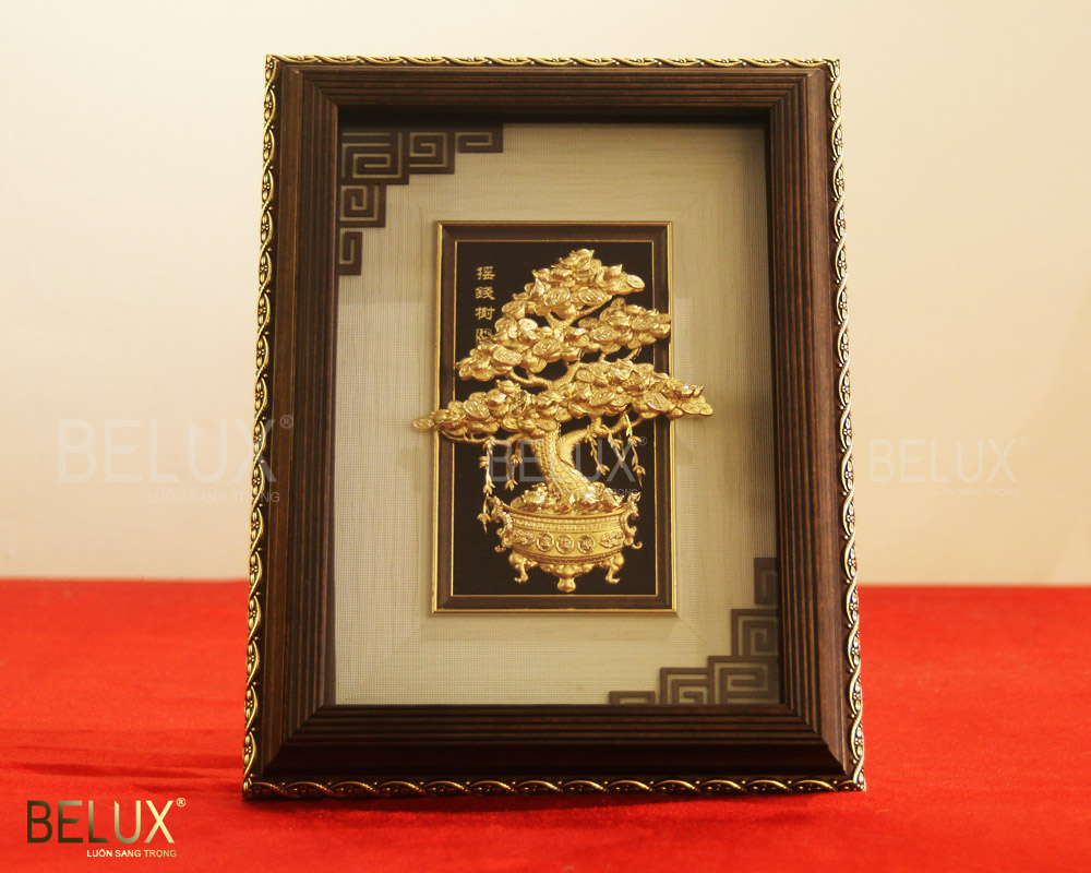 Đặc biệt, tranh cây tài lộc dát vàng của BELUX được dát vàng ròng 24K thanh khiết giúp tăng thêm may mắn, làm toát lên vẻ đẹp tinh tế, sang trọng. Bởi màu vàng là biểu tượng của sự vương giả, quý tộc. Cây được tạo hình mềm mại với nhiều nhánh cây. Trên mỗi nhánh là những đồng tiền cổ hình tròn và khối ngân lượng xếp chi chít, chồng lên nhau. Với sự khéo léo, cẩn thận của những người thợ lành nghề, từng đường nét hoa văn được chạm trổ tỉ mỉ, tinh tế, sống động.