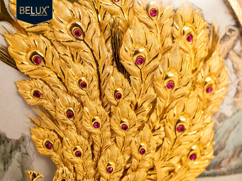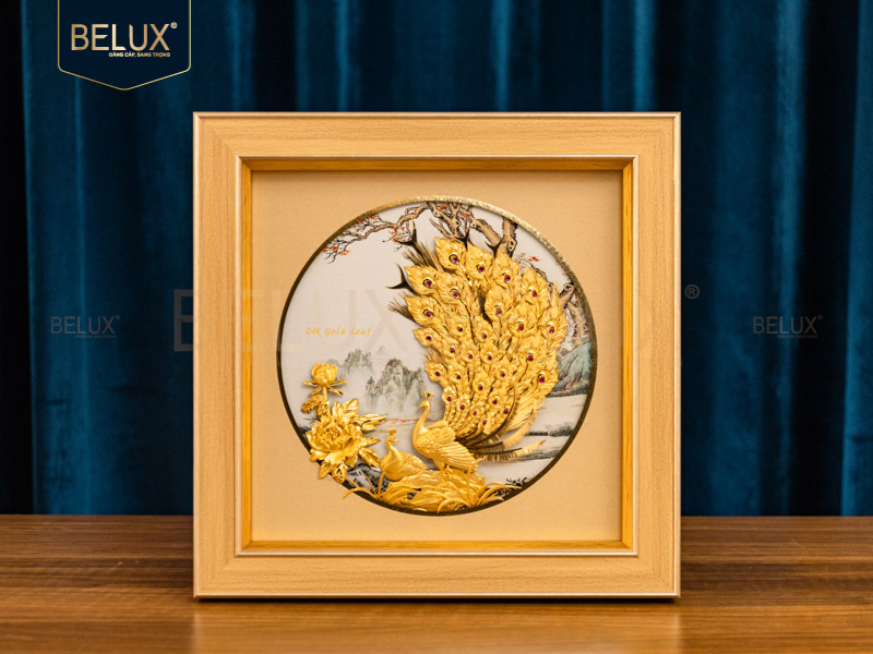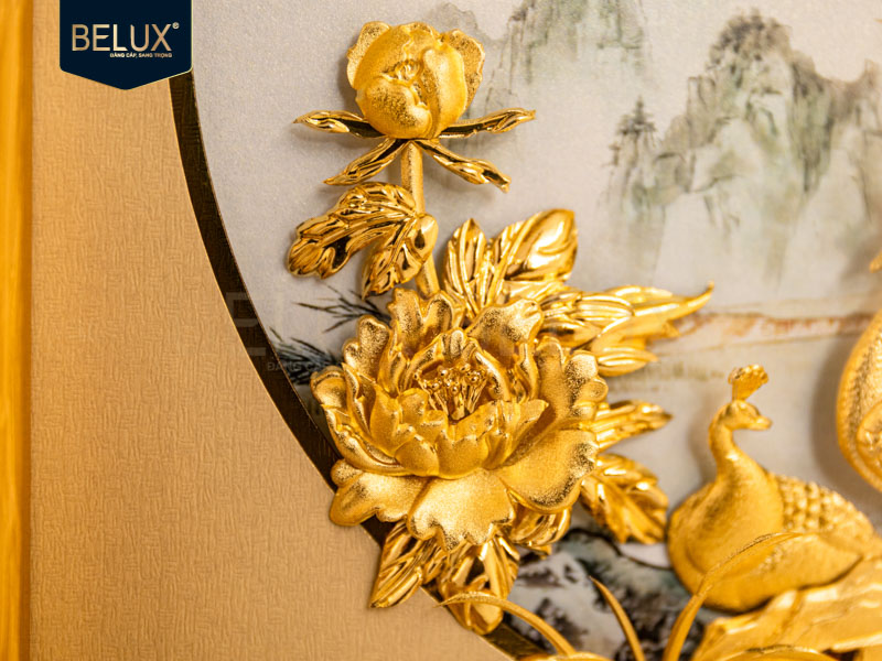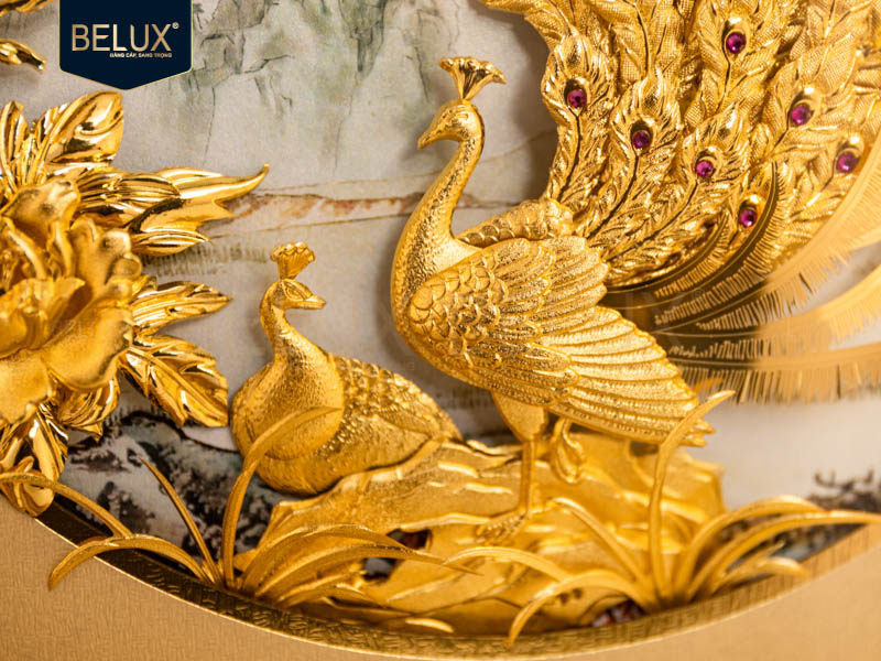 Khi được chế tác bằng vàng 24K, tranh không chỉ tăng giá trị thẩm mỹ mà còn mang đến năng lượng phú quý, bền vững theo thời gian. Ánh vàng dát thủ công giúp hình ảnh chim công trở nên nổi bật và sang trọng, tạo điểm nhấn cho không gian sống hoặc làm việc.