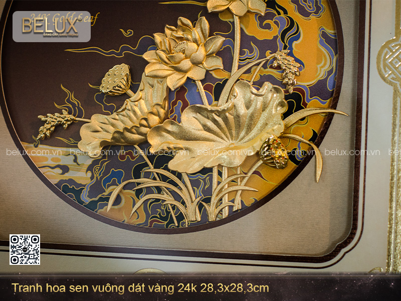 Tranh Hoa Sen Dát Vàng 24k 28x28cm – Quà Tặng Tinh Tế Mang Giá Trị Tâm Linh và Thẩm Mỹ