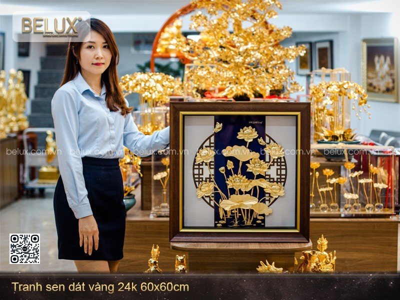 Mầu tranh hoa sen này được nghệ nhân của Belux chế tác thủ công và phủ vàng 24k lên bề mặt. Tranh có đặc điểm vô cùng bền bỉ theo thời gian mà không sợ bị oxi hóa hay mất màu như các bức tranh chất liệu khác.
