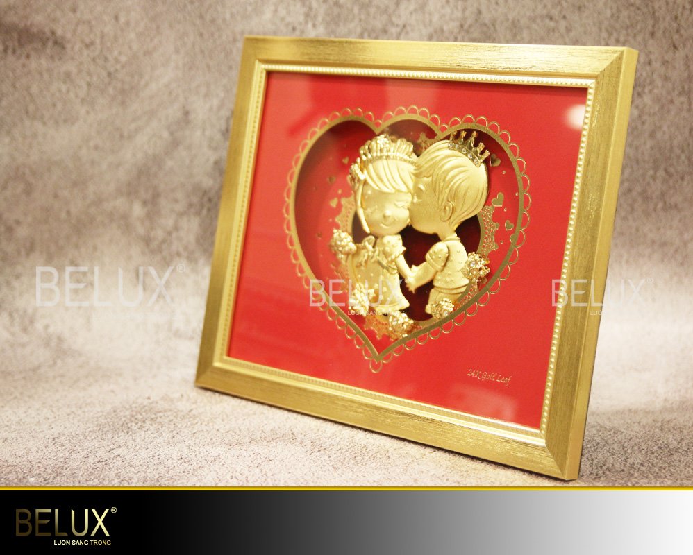 Mỗi một món quà tặng đều ít nhiều ẩn chứa những tâm tư, tình cảm của người tặng đối với đối phương. Thông qua sản phẩm “Tranh kỉ niệm ngày lễ tình nhân” này, bạn có thể gửi gắm thông điệp đến với người ấy rằng: Tình cảm hay bạn sẽ luôn đắm say, nồng nhiệt như hình ảnh cặp đôi đang tận hưởng dư vị tình yêu ngọt ngào. Sản phẩm được điêu khắc tinh xảo, với chất liệu vàng 24K sẽ là một món quà tuyệt vời để ghi dấu cho tình cảm đôi lứa, người ấy chắc chắn sẽ rất hạnh phúc khi được nhận một món quà tinh tế như vậy. Thông tin sản phẩm: