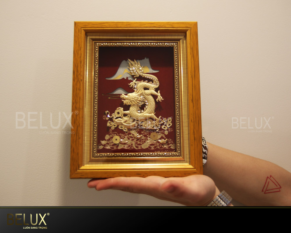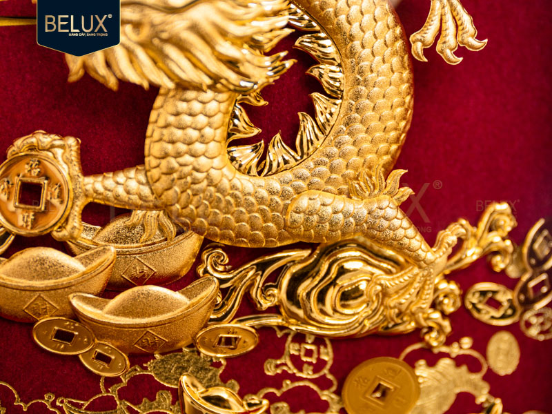 Tranh rồng của BELUX được chế tác tinh xảo từ chất liệu đặc biệt. Sau đó dát vàng 24k lên hình ảnh rồng và tiền vàng không chỉ tăng thêm giá trị, tính thẩm mỹ mà còn thể hiện đẳng cấp của người chơi tranh. Bức tranh có độ sáng đẹp, tinh tế, sang trọng, quyền quý nên có thể trang trí hoặc làm quà biếu tặng. Món quà sẽ thay lời chúc đến người nhận có được quyền lực, tài lộc, cuộc sống sung túc, thinh vượng, bình an.