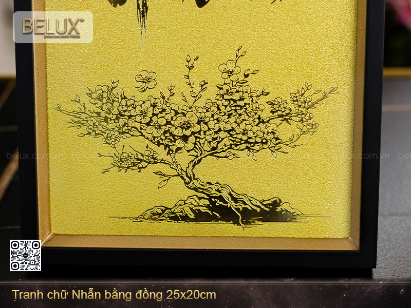 Tranh Chữ Nhẫn bằng đồng là sản phẩm thủ công cao cấp được thiết kế và chế tác độc quyền bởi Quà tặng Belux. Với kích thước tiêu chuẩn 25x20cm, bức tranh nhỏ gọn, dễ trưng bày ở nhiều không gian như bàn làm việc, phòng khách, phòng thiền, góc học tập hoặc treo tường trong văn phòng, phòng họp.