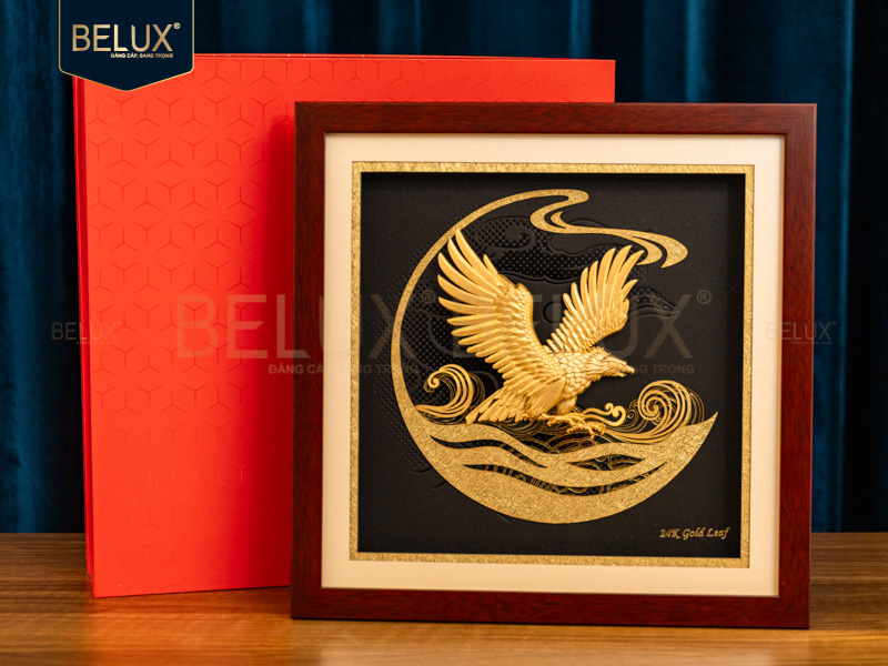 Đại bàng từ lâu là biểu tượng của những người đứng đầu: mạnh mẽ, tỉnh táo, có tầm nhìn xa. Trong tranh mạ vàng, từng nét khắc trên đôi cánh, ánh mắt và bộ móng khỏe khoắn của đại bàng toát lên khí chất lãnh đạo.