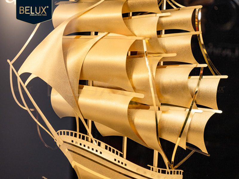 Lớp mạ vàng trên từng chi tiết sóng nước và cánh buồm khiến tổng thể bức tranh trở nên mềm mại, uyển chuyển, phù hợp tặng: