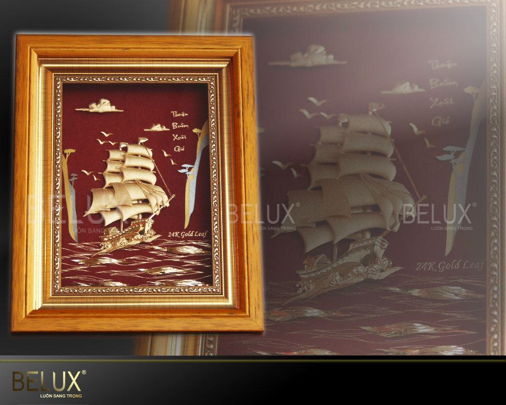 - Tên sản phẩm: Tranh thuận buồm xuôi gió dát vàng 24k 25x20cm