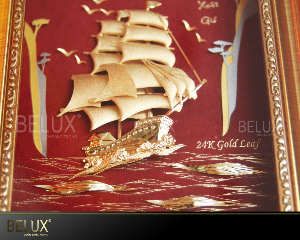 Bức tranh được hoàn thiện bởi các nghệ nhân kim hoàn dày dặn kinh nghiệm. Từng đường nét, họa tiết trên bức tranh được chau chuốt tỉ mỉ làm nổi bật được cái hồn và khí phách mạnh mẽ của con thuyền khi ra khơi. Đặc biệt, tranh được dát vàng 24k thanh khiết mang vẻ đẹp độc đáo, cuốn hút, toát lên sự sang trọng, quý phái.
