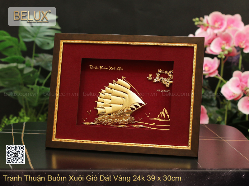 Tranh Thuận Buồm Xuôi Gió Dát Vàng 24K (39x30cm) – Món Quà Tượng Trưng Cho Sự Hanh Thông, May Mắn và Thịnh Vượng