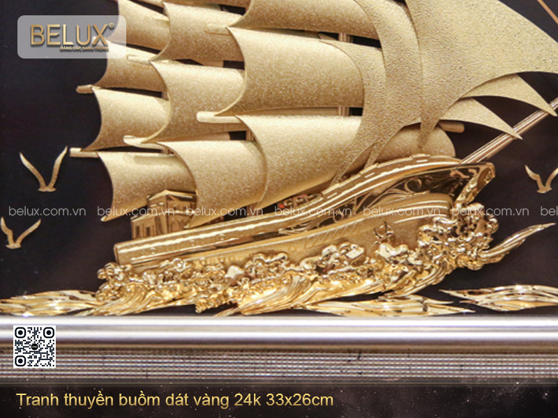 Dưới bàn tay của người nghệ nhân, hình ảnh con thuyền trở nên vô cùng nghệ thuật, từng đường nét đều được chăm chút hết sức tinh xảo. Lại được dát vàng 24k thanh khiết lên bề mặt và bao bọc bởi khung gỗ. Vậy nên bức tranh toát lên vẻ đẹp sang trọng, đẳng cấp. Bức tranh này hứa hẹn sẽ là tặng phẩm vô cùng giá trị dành cho đối tác, khách hàng VIP, các sếp lớn hay doanh nghiệp trong những sự kiện đặc biệt.