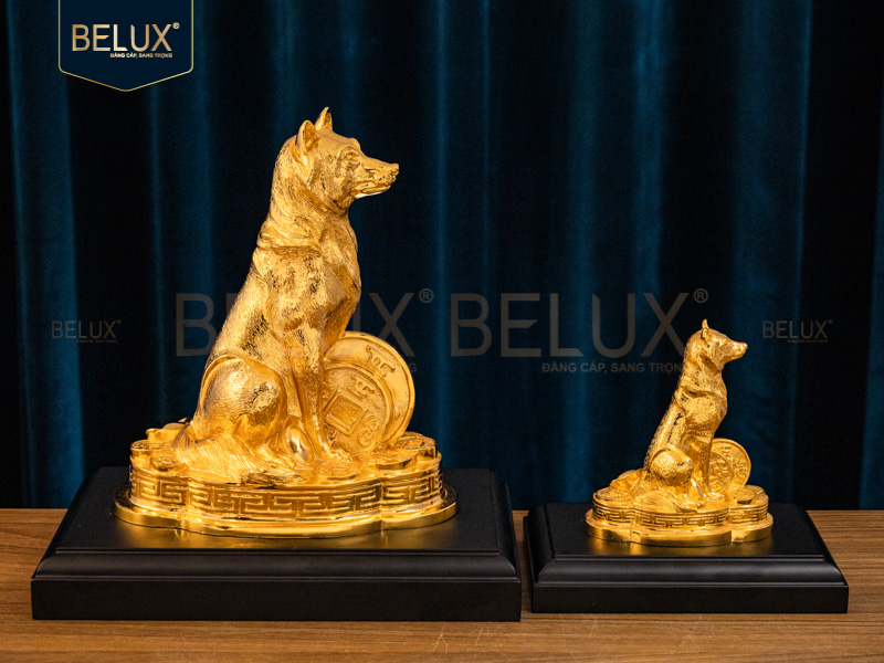 Tại Belux, tượng chó đồng mạ vàng được chế tác tỉ mỉ, tinh xảo. Không chỉ đem lại mặt thẩm mỹ mà ngay cả tính hài hòa phong thủy cũng được khách hàng đánh giá rất cao. Sản phẩm được chế tác từ đồng thau nguyên chất, mạ vàng 24k sang trọng, đẳng cấp và tinh tế. Các sản phẩm đa dạng như tranh đồng, tượng đồng linh vật, bộ ấm chén sứ dát vàng,… Liên hệ ngay với Belux để được tư vấn và đặt mua các sản phẩm. Xem thêm:Tượng Sư tử bằng đồng cát tút vỏ đạn