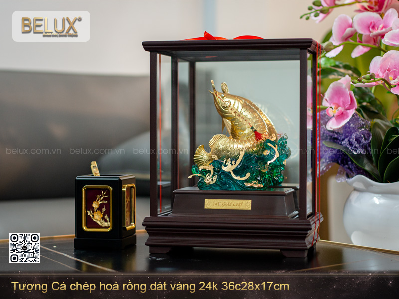 Tượng cá chép hóa rồng: gắn liền với câu chuyện vượt vũ môn, tượng cá chép mang ý nghĩa công danh, thi cử, sự nghiệp thăng hoa.