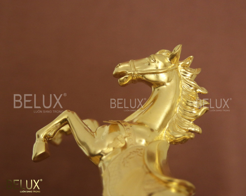 Bức tượng được tạo ra từ đôi bàn tay tài hoa của những người nghệ nhân dày dặn kinh nghiệm nên mỗi đường nét đều được chăm chút cẩn thận, tỉ mí. Từ đó tái hiện chân thực hình ảnh chú ngựa đang phi nước đại với ánh mắt cương trực, cứng cỏi, khỏe khoắn, linh hoạt. Sản phẩm được dát vàng 24k tạo vẻ đẹp cuốn hút, toát lên sự sang trọng, cao quý. Tượng được đặt trên đế gỗ sang trọng và được bảo vệ bởi tấm kính mika. Lại có thêm hộp đựng quà sang trọng, thích hợp làm quà tặng VIP, quà tặng Doanh nghiệp, quà tặng Sếp…