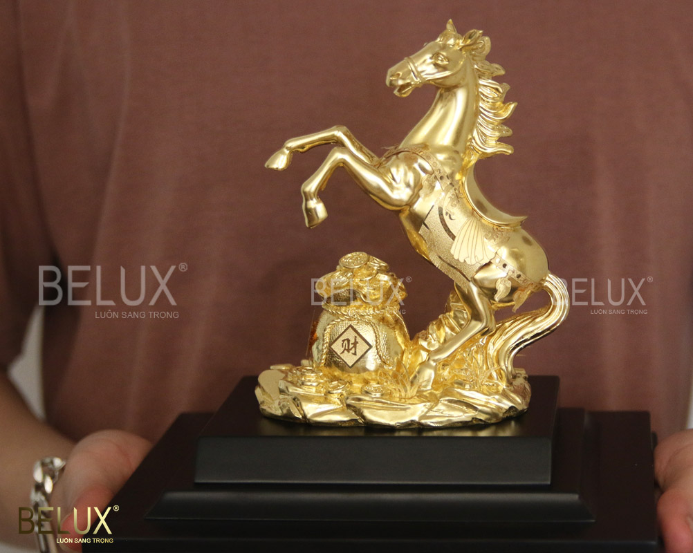 Ngựa là biểu tượng cho tài lộc, sự thành công, thăng tiến trong công danh sự ngiệp. Tượng ngựa mã đáo thành công dát vàng 24k được chế tác thủ công cực kỳ tinh xảo, sang trọng, đẳng cấp nên là món quà thay lời chúc may mắn, thịnh vượng, vạn sự tốt đẹp, tài lộc vững mạnh cho đối tác, khách hàng, sếp, người thân,…