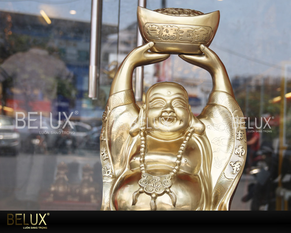 Tượng Phật Di Lặc được các nghệ nhân Belux chạm khác một cách tỉ mỉ. Với thân hình mập mạp, ngài Di Lặc đứng hiên ngang, hai tay nâng đĩnh vàng. Ngài với chiếc bụng béo tròn như chứa cả càn khôn, nụ cười thiện lương và ấm áp. Nhìn vào tượng đồng Phật Di Lặc, ta như thấy tâm hồn thanh tĩnh thêm đôi phần.