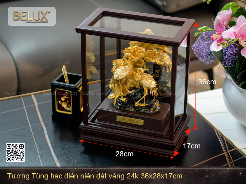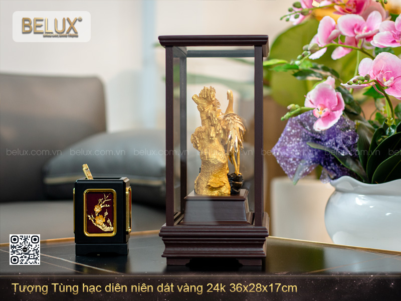 - Qua bài viết, hy vọng quý khách hàng đã hiểu rõ về Tượng Tùng Hạc diên niên dát vàng 24k kích thước 36x28x17cm. Nếu cần tư vấn chọn mua, quý khách vui lòng liên hệ với Belux qua hotline: 0983.232.823